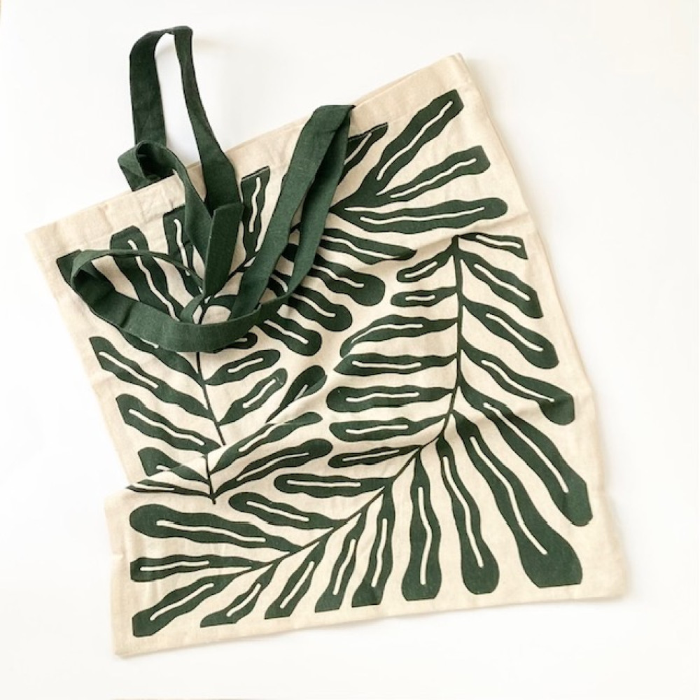 Mulepose/ indkøbs net, - med et flot grafisk mønster i grønt - som abstrakte blade.